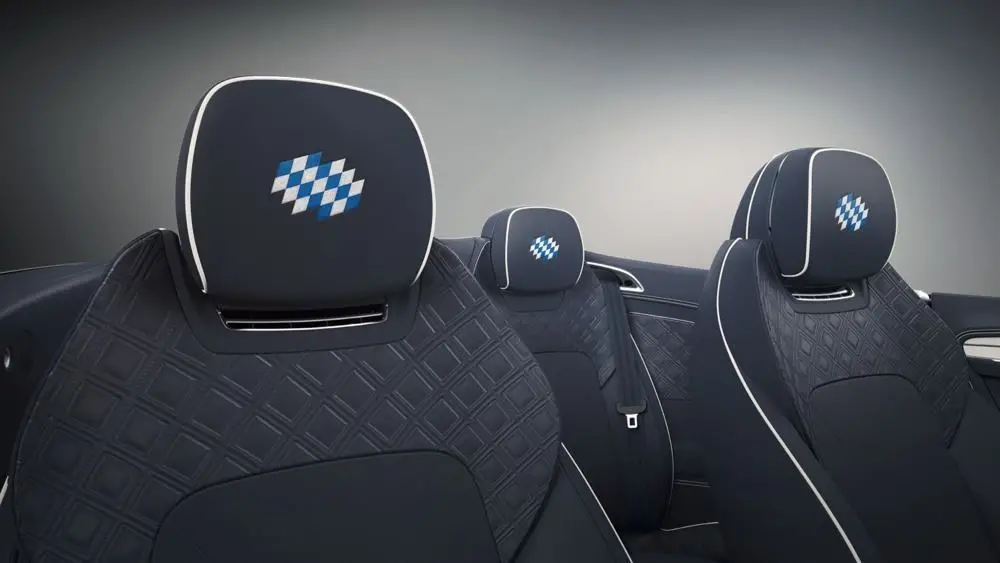 Baviera es la inspiración de este nuevo Bentley y por eso el blanco y el azul, colores de la bandera de este estado, son los grandes protagonistas de la estética de este vehículo tan exclusivo: pintura exterior en blanco glaciar y techo en azul imperial, el patrón de la bandera bávara como detalle decorativo del guardabarros delantero y también, ya en el interior del vehículo, en los reposacabezas; los asientos de cuero con ribetes en lino son una muestra más del lujo más absoluto que protagoniza el diseño de este Bentley.