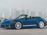 Porsche celebra sus 70 años en Estados Unidos evocando al extinto 356 America Roadster y reproduce la estética de aquel glamouroso vehículo producido en los 50 en una serie limitadísima, tan limitada que sólo se produjeron 16 vehículos. El nuevo y espectacular Porsche 911 Carrera GTS Cabriolet America Edition basa su diseño en el del 911 Carrera TGS Cabrio, se pinta en Azul Azure 356 y luce llantas de aleación en diseño RS Spyder pintadas en blanco y rojo, pareja de colores que también decora la parte inferior de los paneles de la spuertas y de las aletas.