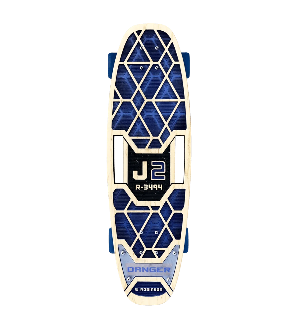 Nos gusta tanto la idea de perdernos en el espacio sin movernos del sofá que no sólo hemos visto todos y cada uno de los capítulos de Lost in Space (leed con tranquilidad… evitaremos todo amago de spoiler) sino que hay quien, viendo nuestro regocijo paseando galaxias inexploradas, se ha lanzado a diseñar un monopatín a la altura de nuestra Júpiter o incluso de la propia Resolute y es que su diseñador, Bear Walker, ha explicado que se lanzó a diseñar este espectacular monopatín como si fuera una petición de la familia Robinson: un vehículo de exploración de corto alcance para el más pequeño de la familia, Will Robinson, por eso se llama J2, porque la suya era la Júpiter 2, también hay una razón para el mensaje grabado en este monopatín futurista: Danger, W. Robinson (Peligro, W. Robinson) pero no daremos ni media explicación al respecto para no faltar a nuestra palabra acerca de omitir todo spoiler en esta noticia.
