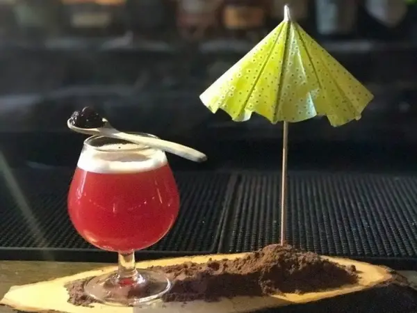 Ingredientes: 4 cl de Diplomático Mantuano, 1 cl de licor de castaña, 3 cl de zumo de lichi, Top cerveza IPA.