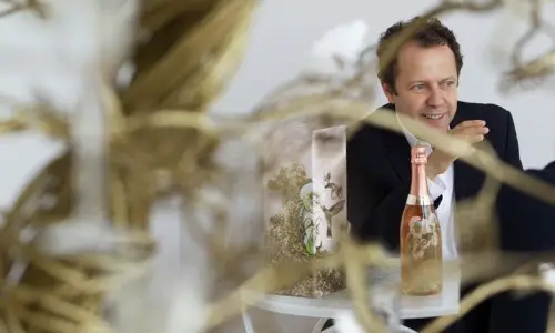 El reconocido artista brasileño ha diseñado una botella especial para el Perrier Jouët Belle Epoque Rosé 2005.