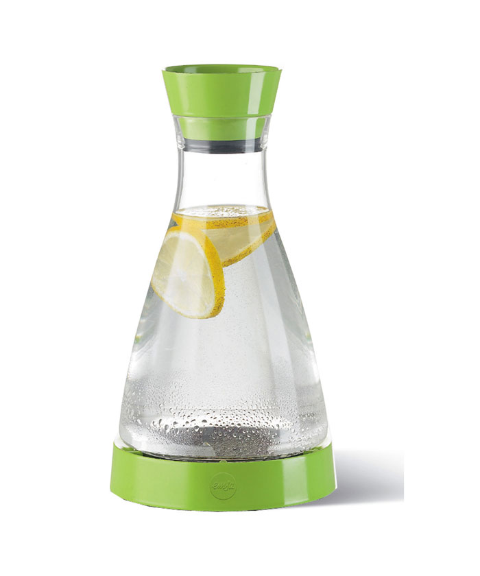 Prueba con estas jarras refrigeradoras de Emsa que venden en Ohmenaje. Las jarras, de un litro (26 euros), son de vidrio normal y corriente e incluyen un tapón verde, amarillo o lila y una base del mismo color. Pues bien, esa base esconde un cojín que se congela y que mantiene fresco el contenido durante cuatro horas. No está mal ¿no?