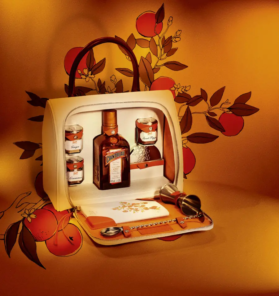 En este especial bolso encontramos, además de una botella de Cointreau, los ingredientes y utensilios necesarios para preparar un delicioso cóctel, para que seas de verdad como la niñera mágica a la que nunca le faltaba una respuesta en forma de objeto cuando metía la mano en su bolso.