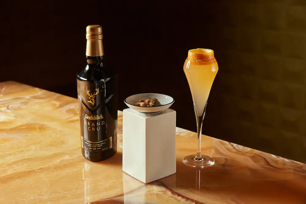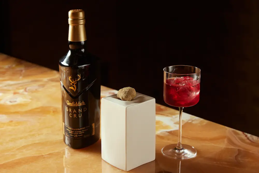 Cócteles, por supuesto, elaborados con Glenfiddich Grand Crue y platos en los que ingredientes como el caviar, las ostras, la trufa, la ventresca ibérica o el venado son protagonistas absolutos pero vamos a darte más detalles, imagina: el menú empieza con un bocado de caviar con mantequilla y anarcardo que marida, o armoniza, con un cóctel de cuvée preparado con Glendiddich 23 Grand Cru, orgeat, angostura y champagne brut; a continuación se degusta la ostra con jalapeño y fruta de la pasión maridada con Ponche 23, un cóctel preparado con Glenfiddich 23 Grand Cru, yema de huevo, avellanas, angostura bitters y Palo Cortado; el tercer bocado es de trufa, trufa nitro de hongos liofilizados armonizada con un sueño de La Vida en Rosa que se prepara con Glenfiddich 23 Grand Cru, zumo de arándanos y de lima, chocolate blanco y bitter de chocolate.