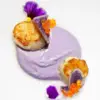 Ahora sí, ya está, sólo móntalo: el bizcocho en la base del plato, sobre él la pulpa de maracuyá y, encima de ella, una quenelle de helado; a continuación la tortilla soufflé y todo ello forrado con la piel de leche dándole forma de tortilla, gratinar en salamandra y… a disfrutarlo.