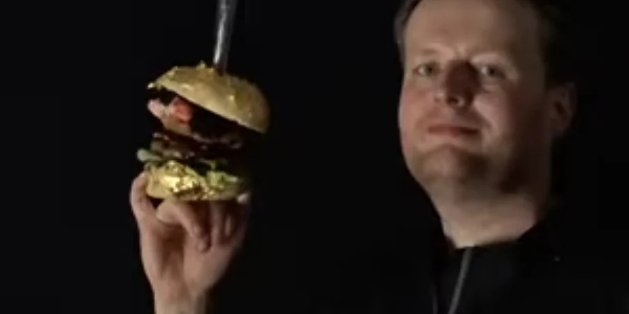 En este video de poco más de tres minutos descubrirás cómo preparar la hamburguesa más cara del mundo, eso sí, lo que no será fácil es que puedas hacerte con los ingredientes para prepararla tú mismo, son estos: carne de wagyu, cangrejo real cocido en chablis, aros de cebolla rebozados con Dom Perignon, paleta ibérica de bellota, trufa blanca italiana, caviar Beluga, pan preparado con Dom Perignon y azafrán recubierto de oro, mayonesa de azafrán ahumado elaborada con huevos de pato, salsa BBQ hecha concafé Kopi Luwak y Macallan Single Malt Rare Cask, el mejor queso cheddar del mundo, tomates tigre en escabeche en matcha japonés, pepino en escabeche en matcha japonés y humo con infusión de whisky.