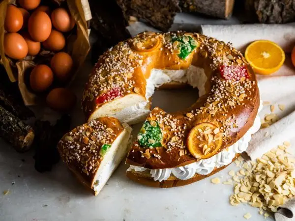 El Roscón de Reyes no es un bollo ni un dulce como cualquier otro y lo que lo hace especial no es sólo, aunque también, el agua de azahar, sino que se trata de un pan dulce, es decir, en su preparación se utiliza masa madre (como la del pan), dicho de otro modo, no se prepara como un bizcocho tradicional sino como un pan dulce relleno de lo que te apetezca (si no prefieres relleno, claro) o seco, como era originalmente, y con su par de sorpresas: la buena, que tradicionalmente era un Rey Mago y ahora puede ser cualquier cosa, y el haba (al que le toca, paga el roscón).