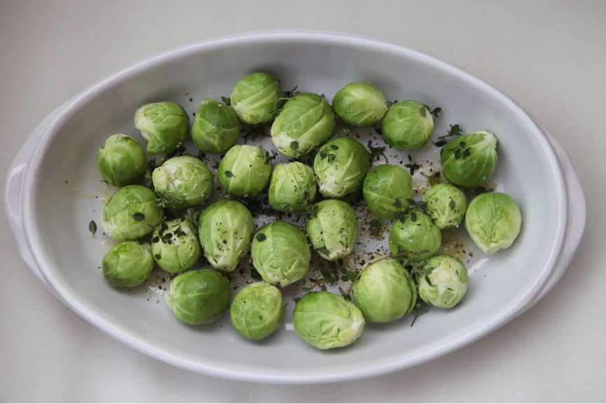 Receta paso a paso: Coles de Bruselas asadas con uvas, vino tinto y balsámico.