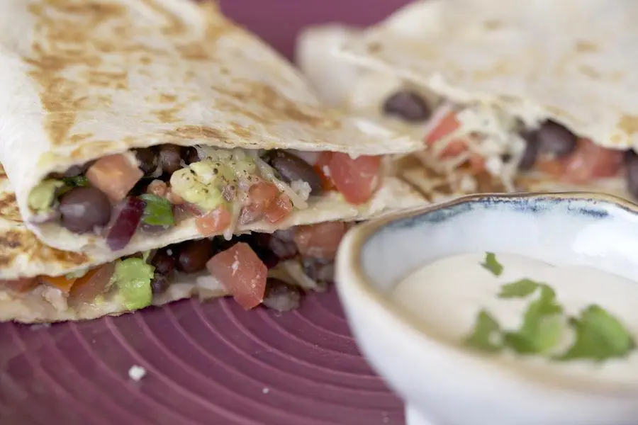 La nuestra sí lleva queso, de lo que carece es de carne, un ingrediente también común en las quesadillas, y en cambio lo que añadimos son unos deliciosos frijoles negros; en cuanto a los complementos, optamos por dos que son también habituales en este tipo de plato mexicano: el aguacate -un superalimento que hace de nuestra quesadilla un plato de lo más nutritivo- y la salsa pico de gallo; por supuesto en el paso a paso de nuestra receta te contamos también como preparar esta salsa y la que acompañará a las quesadillas una vez estén listas para tomar tras tostarse en la sartén al tiempo que se funde ligeramente el queso -crema de nata y cilantro-.