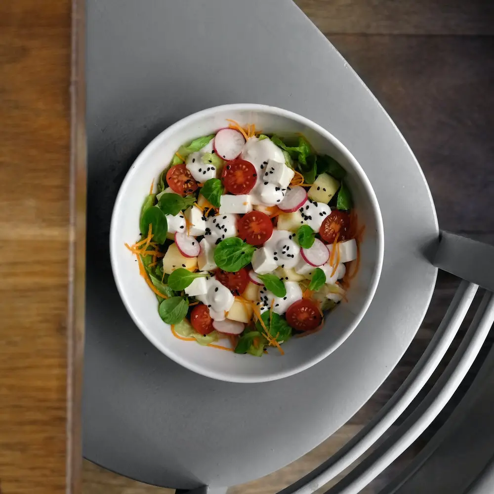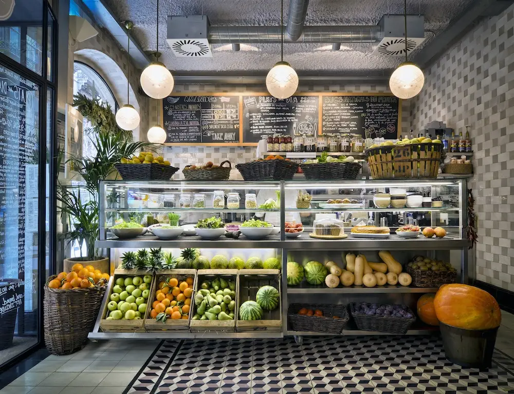 Y los postres ¡qué postres! los hay para todos los gustos, para los amantes de la fruta, del dulce, del yogur, de las tartas…: la opción más apropiada dada la ocasión que se celebra es sin duda la tarta 10º aniversario Teresa Carles Barcelona pero, si no eres muy de tartas, puedes elegir la sopa de crema inglesa vegana con fresitas a la pimienta negra, el kéfir con frutos secos o el yogur de soja natural, de melocotón y mango o de arándanos.