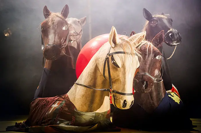 Fruto de ese trabajo es la compañía Race Horse, el máximo exponente del nuevo circo finlandés. Acrobacias, camas elásticas, barra rusa, rueda de la muerte, catapulta humana… seis artistas que han desarrollado de manera intensiva sus habilidades personales para converger en un explosivo espectáculo sin tregua ni cuartel para el asombro de quien lo contempla. Según su propia definición, sus señas de identidad son: el humor negro, una mirada bizarra y unos intérpretes kamikazes; combinando todo esto con una estética rompedora. Puro calor de circo venido del frío norte de Europa.