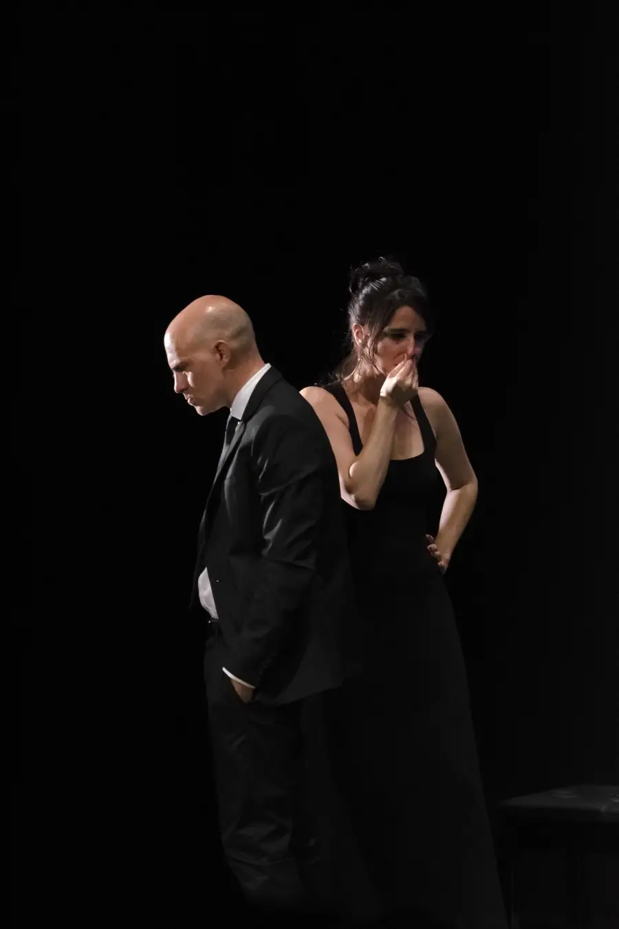 Y una extraña pareja. O no tanto. Porque todo ese mundo onírico latente en el fondo de las tablas se introduce en la cabeza del espectador mediante una explosión de encuentros y desencuentros, armonías y disonancias, cuando los actores se lanzan a narrar su historia bajo los destellos de un neón azul. El único exceso escénico que se permite el montaje.