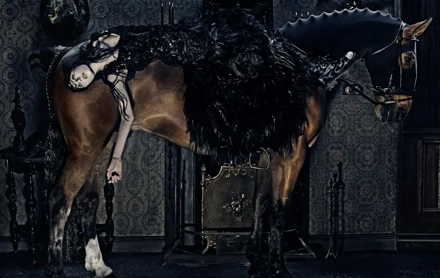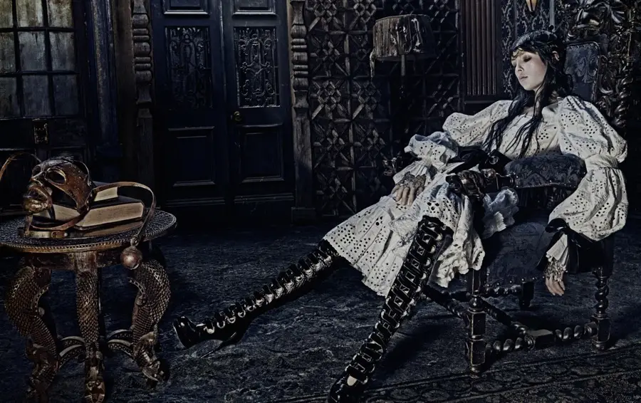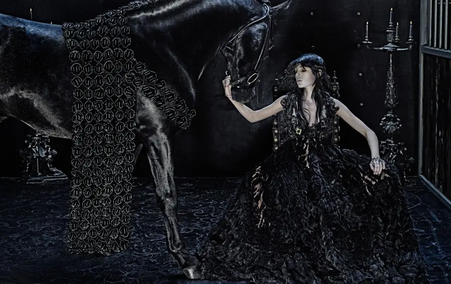 Edie Campbell se convierte para Mcqueen en toda una amazona clásica en un ambiente que quiere ser de época pero que es, por encima de todo, sofisticado y misterioso; se trata de la evocación de un castillo de la Edad Media en el que Edie viste ropajes inspirados en el exceso de tejido de entonces entremezclado con la creatividad de Macqueen, un mix que resulta atractivo a rabiar, más incluso cuando el responsable de imortalizarlo es el reconocido fotógrafo americano Steven Klein, a quien hemos visto ya firmar, además de soberbios editoriales de moda, campañas para Calvin Klein o Dolce & Gabbana.