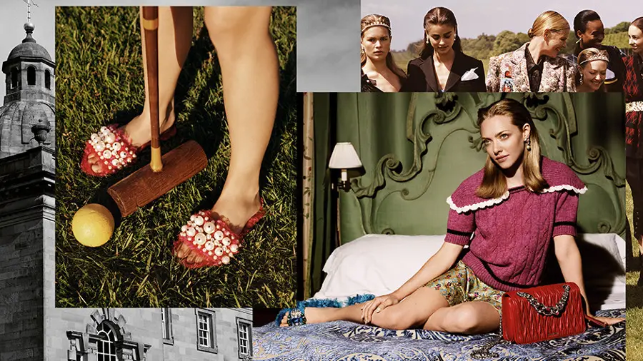 La actriz estadounidense Amanda Seyfried, encabeza un elenco de personajes para un fin de semana de ensueño, en la histórica finca Houghton Hall de Norfolk. Una exploración del lujo decadente entre la modernidad y la historia, contada a través de las fotografías de Alasdair Mclellan en su debut con Miu Miu. Amanda no está sola en estas imágenes, cuenta con la compañía de las modelos: Anna Ewers, Dasha Dogusheva, Dilia Martins, Jeny Howorth, Mayowa Nicholas y Taylor Hill.