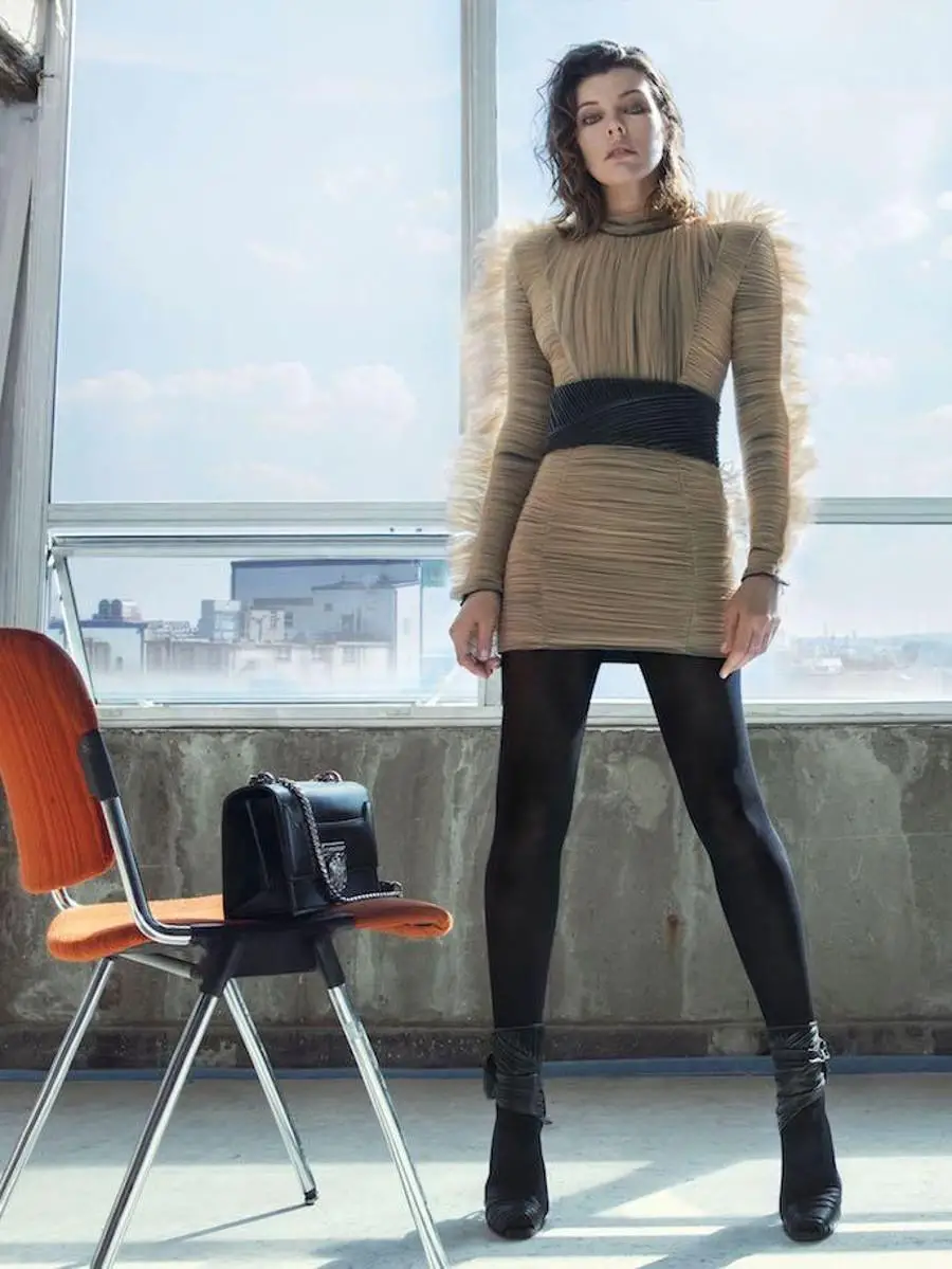 La campaña femenina de Balmain para este otoño-invierno se presenta en varios capítulos; todos ellos estarán protagonizados por emblemáticas mujeres del panorama internacional. El primer capítulo de la colección lo protagoniza Mila Jovovich. Mila es una mujer increíblemente polifacética: modelo, cantante, productora cinematográfica y famosa actriz -conocida mundialmente- desde que protagonizara junto a Bruce Willis, la película de culto, “El quinto elemento”.