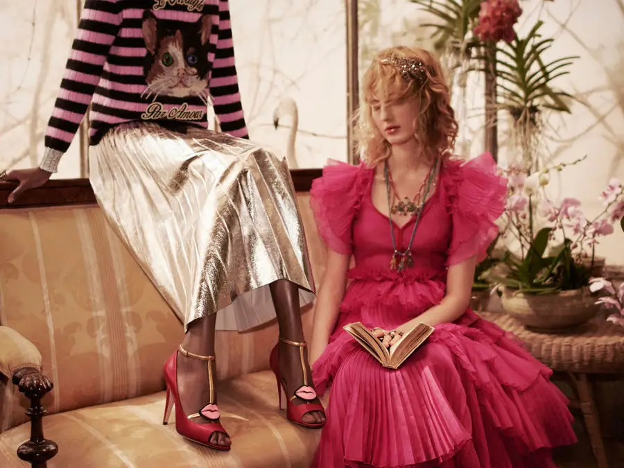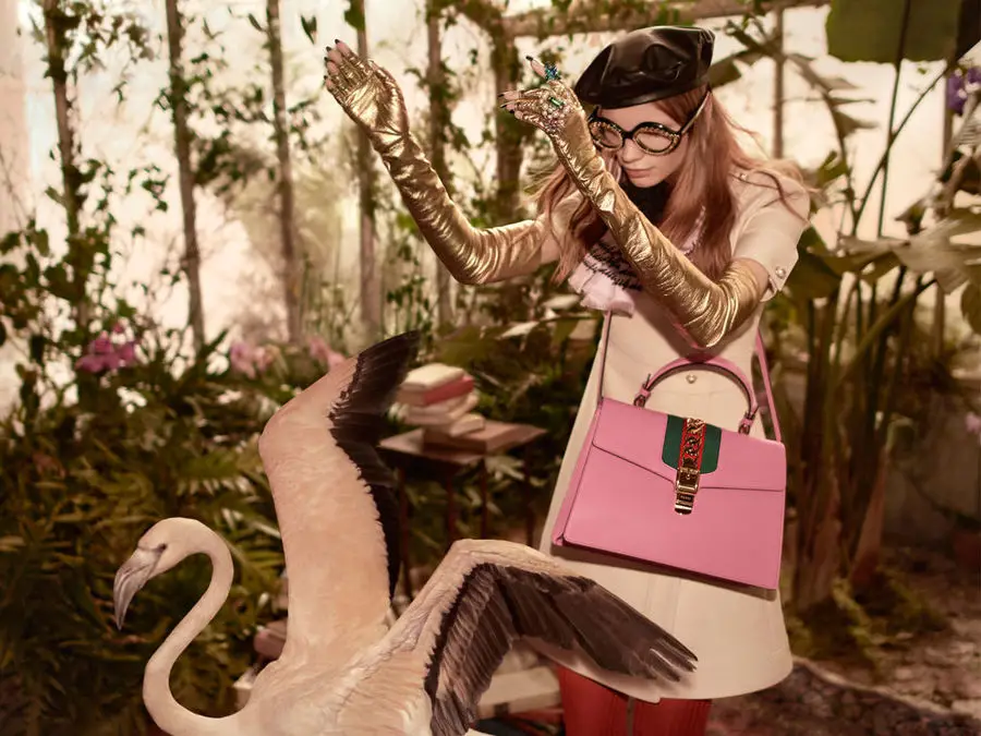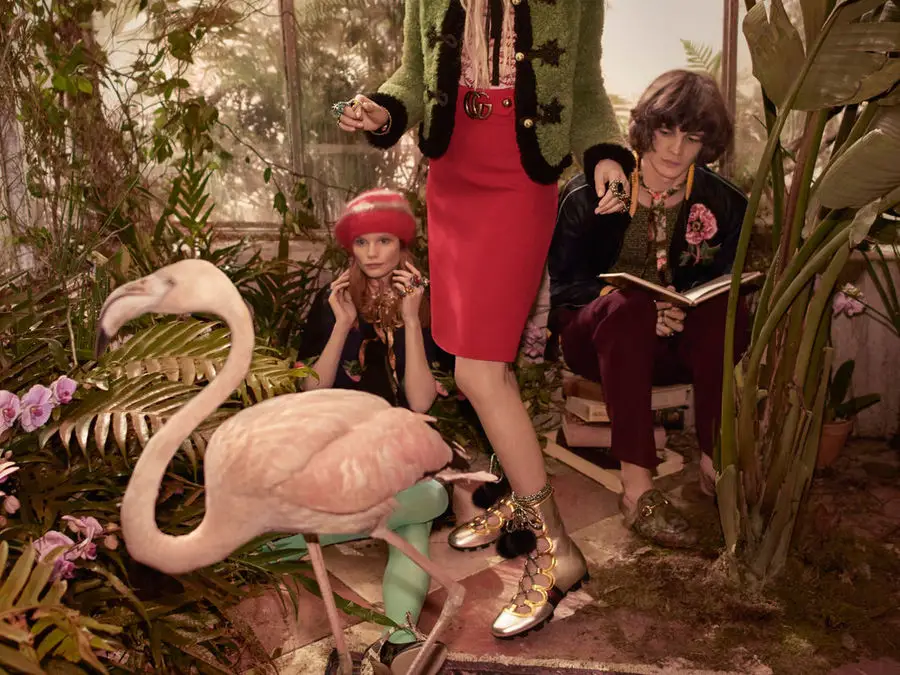 La campaña de Gucci que presenta su colección pre-fall 2016 es onírica y evocadora, romántica, sesentera, vintage y con un toque de diversión, es, por otra parte, como las prendas que presenta, un desfile de propuestas vintage a todas luces inspiradas en el siglo pasado pero con un punto de estilo de vanguardia. La campaña es obra y arte de Glen Luchford y los modelos que han posado ante su objetivo para Gucci han sido Lucas Dambrod, Polina Oganicheva, Eva Minaeva, Fionnan Perkins, Lia Pavlova, Anton Toftgard, Elle Van Ravels, Nicole Atieno y Laura Melerh, un importante plantel que suma belleza a la campaña pre-fall de la renovada firma italiana que, por estrenar ha estrenado en el último año y medio no sólo director creativo sino también logo; lo más pintoresco de esta campaña cabe que sean los flamencos que acompañan a los modelos pero, sin duda, lo más notable es como comienza a verse la mano, estilo, clase y evolución de Alessandro Michele por y para Gucci.