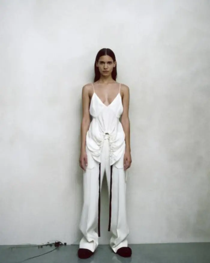 La paleta elegida se basa en los colores básicos: negro, blanco, nude y alguna pincelada de intenso carmín. Khaite seguirá ocupando un puesto importante en el mundo de la moda en el futuro.