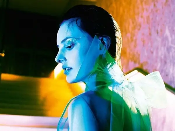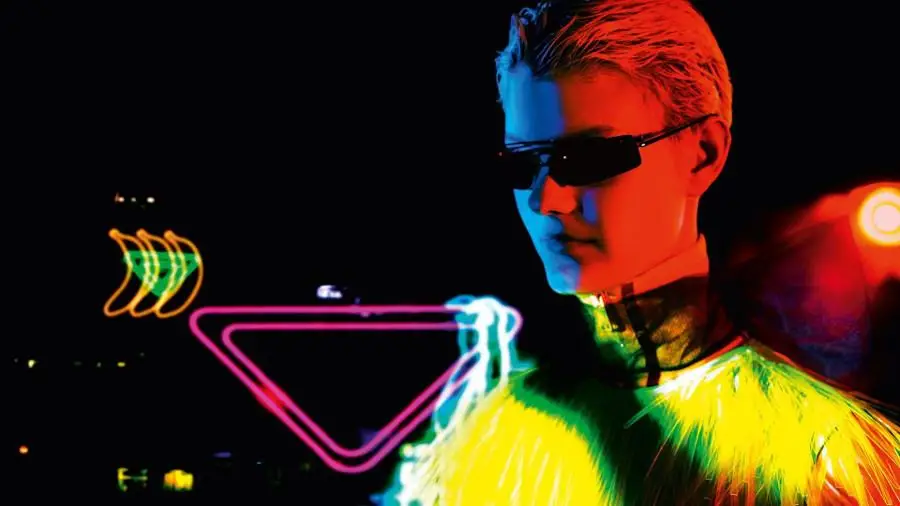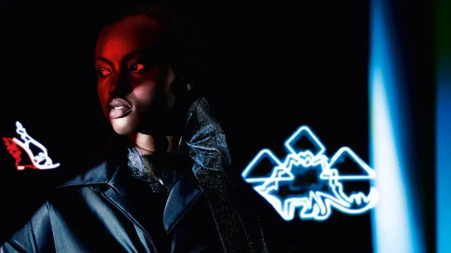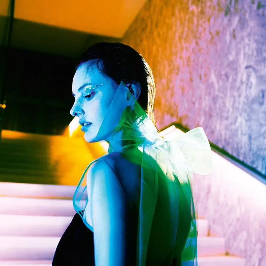 Las prendas destacan por su colorido, contrastando los colores fluor con la sobriedad del negro. Las modelos lucen abrigos entallados o abrigos oversize en tonos oscuros, complementados con lazos y accesorios neón. Los flecos, los tules y las transparencias se superponen a otras prendas.
