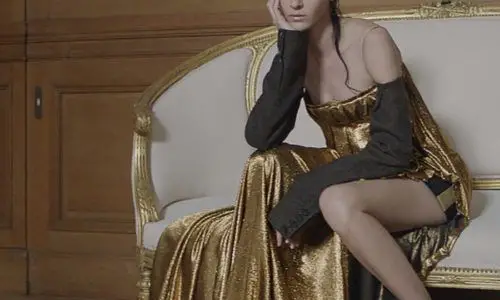 Negro, blanco, oro, gris, transparencias, capas, algunos tejidos voluptuosos, otros de cortes geométricos, zapatos elevados sobre imponetes plataformas… Así es la próxima temporada de otoño e invierno de Vera Wang y así nos la muestra Mariacarla Boscono.