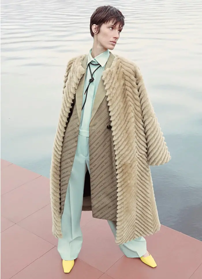 Para las prendas exteriores apuesta por las clásicas gabardinas; elegantes y atemporales, un fondo de armario perfecto para los días otoñales. En cuanto a los abrigos opta por prendas largas de piel, con pelo corto y anudados con cinturón.