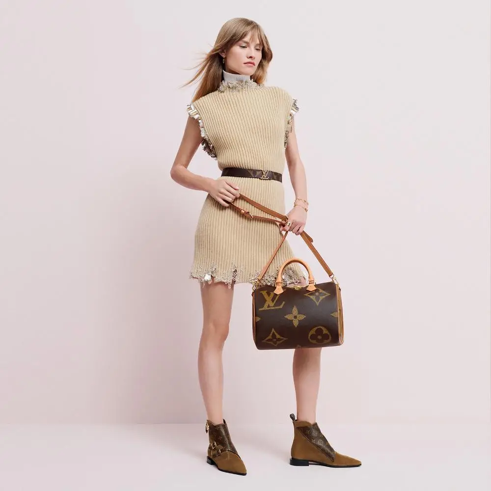 Ahora la colección Monogram Giant, añade un toque contemporáneo y moderno a cualquier look. Se puede encontrar en una serie de productos de piel: desde el bolso Speedy o la cartera Zippi, hasta en versátiles accesorios como el icónico cinturón reversible LV o el Chal XL.