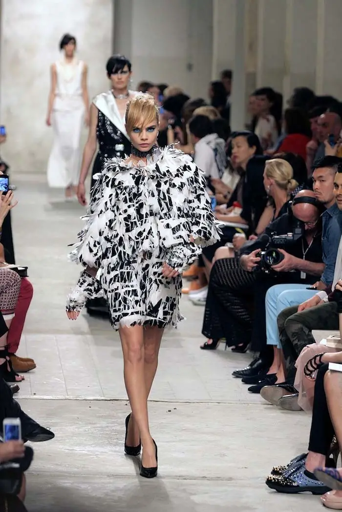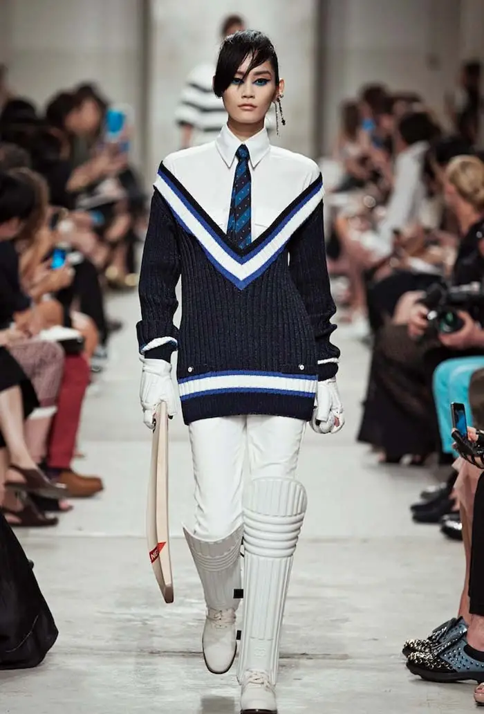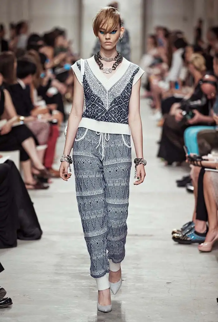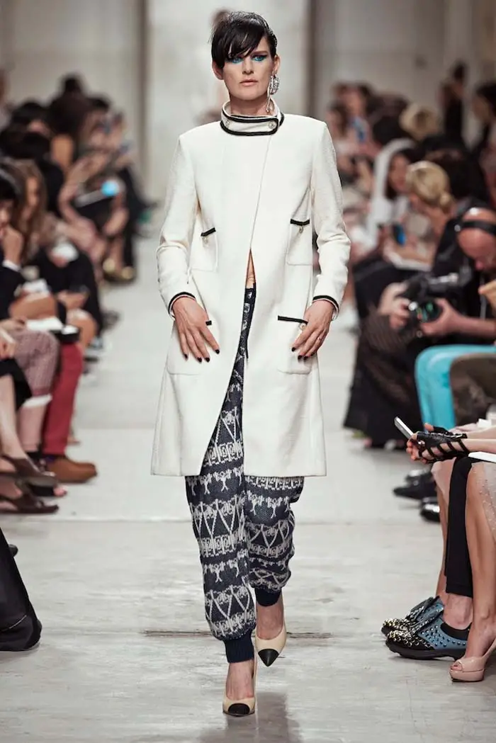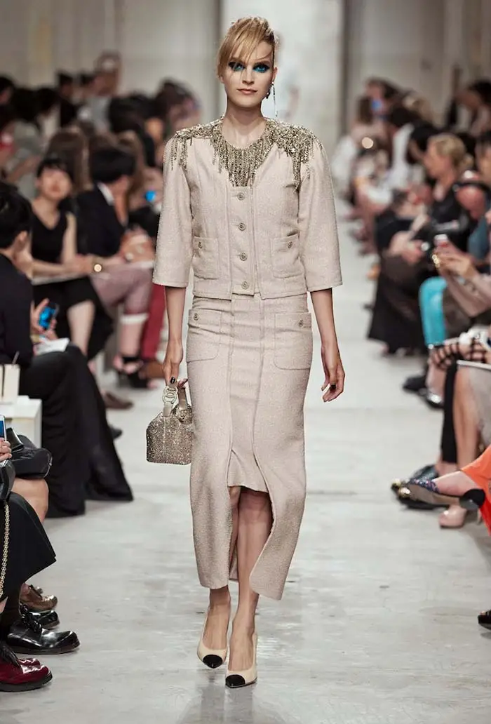 Para esta ocasión, el ‘crucero’ de Karl nos ha llevado por aguas asiáticas, como viene siendo costumbre en los últimos tiempos, para proponernos un despliegue máximo de elegancia y feminidad. Vuelta a las faldas lápiz y vestidos plisados, en lino o crèpe, que se desenvuelven con soltura entre curvas muy marcadas con chaquetas a la cintura. La insinuación llega a través de camisas ligeras y pantalones anchos, aquellos que supuestamente nos recuerdan al cricket pero que, inevitablemente, a los nostálgicos nos obliga a recordar a la Coco que conquistó la alta sociedad con sus sombreros descarados.