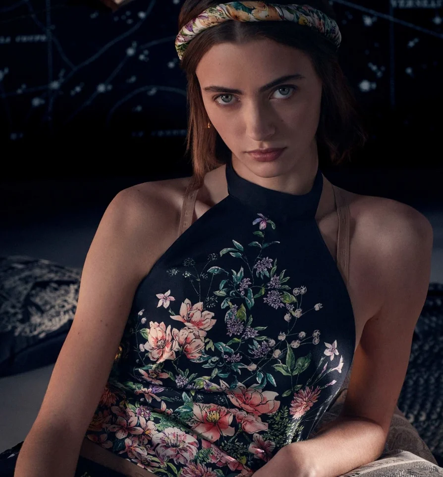 ¿Nuevas piezas de esta colección? Shorts de sarga de seda, camisas del mismo material, mules y otros complementos a juego, pañuelos, tops, suéters, sneakers, pantalones largos, joyas y hasta bolsos, bolsas y carteras. Estampados florales y animales, también constelaciones… si quieres renovar tu colección de loungewear y hacerlo con piezas eternas, pijamas de los que duran una vida y que no dejan de provocar que quieras vestirlos en cuanto llegas a casa, no son muchos los cómplices a los que dirigirte, Olivia von Halle es sin duda uno de ellos y desde el estreno de la línea Chez Moi, Maria Gracia Chiuri nos ha demostrado que Dior, también.