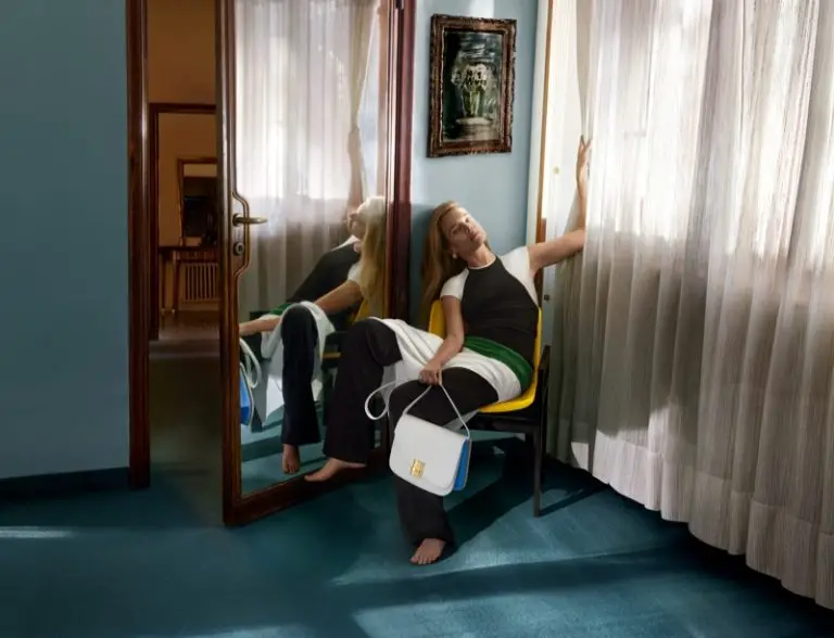Vodianova luce, además de las prendas de vestir, complementos tan elegantes y bellos como el bolso Hug o el bolso Fimma, también gafas de sol y por supuesto el calzado siempre a juego; lo hace en un entorno que no puede ser más evocadoramente italiano, una habitación decorada con muebles de mediados de siglo en tonos que permiten el lucimiento absoluto de la propia Natalia Vodianova y de la colección de primavera y verano de Ferragamo para 2024.