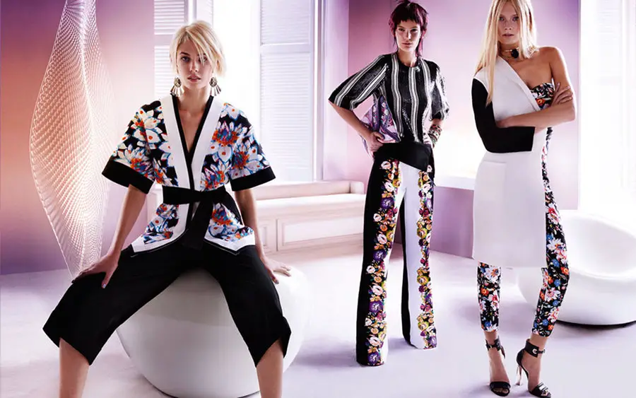 Este año, la diseñadora de la casa, Verónica Etro, pone la mirada en Asia a través de vestidos kimono y de un colorido estampado floral salpicado sobre prendas asimétricas para la colección femenina. El look masculino de la temporada, ideado por Kean Etro, también se inspira en oriente pero hace más hincapié en el misticismo y la sensualidad india.