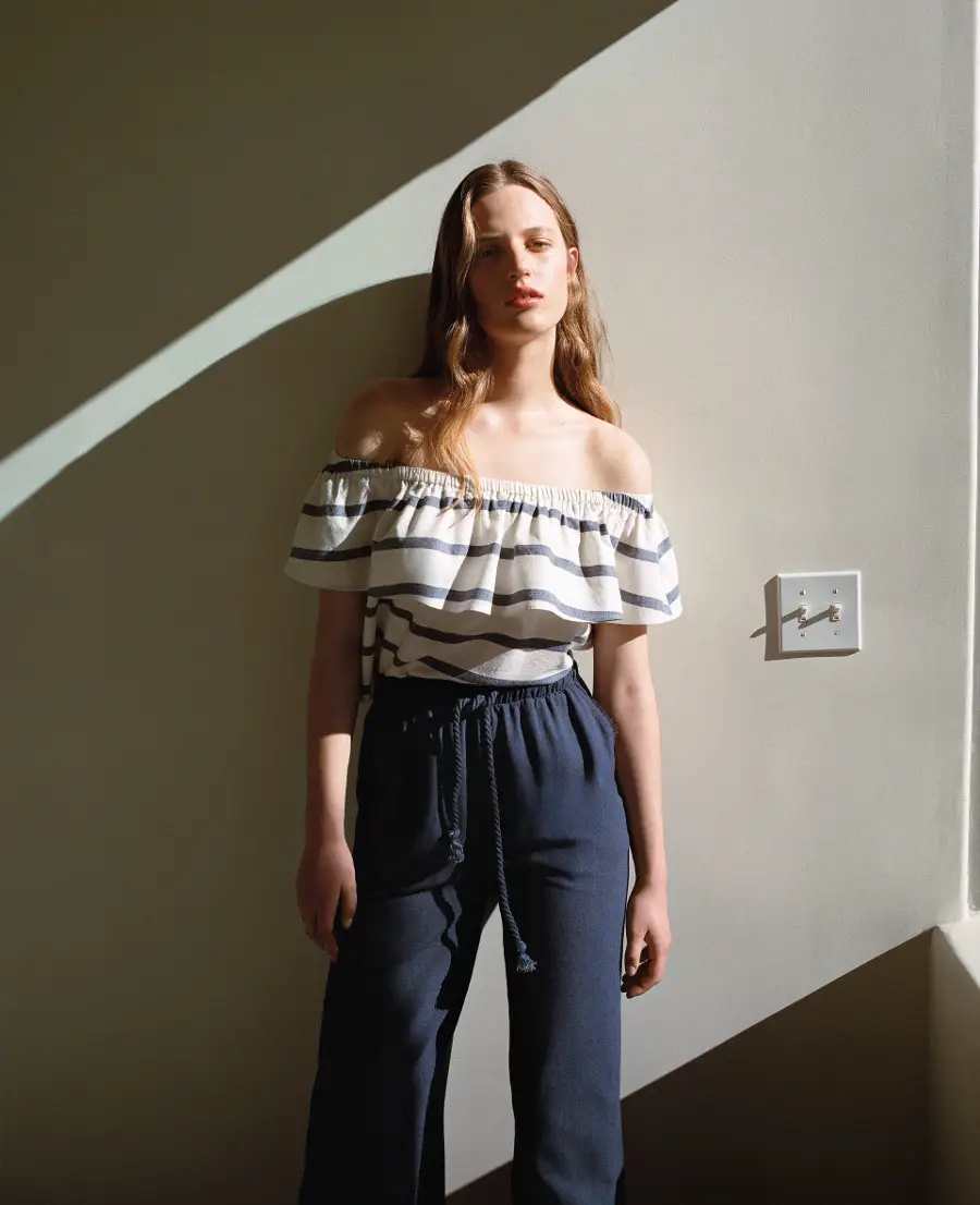 La colección de vestir está formada por vestidos largos y vaporosos, camisetas bordadas, y pantalones de lino pensados para combinar con los bañadores y trikinis. Oysho piensa en una mujer sutil, delicada y femenina para este verano.