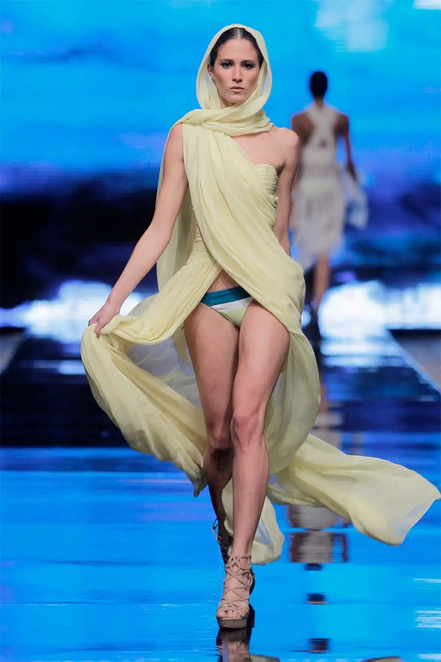 El estilo neo-colonial del Casa Prado fue el escenario elegido para el desfile de la firma española, formado por una selección de los diseños más emblemáticos de la historia de la marca. El trabajo artesanal sobre tejidos como el encaje, pailletes o muselinas de seda se convierte en la carta de presentación para Andrés Sardá, cuyos diseños son considerados haute couture de la moda íntima.