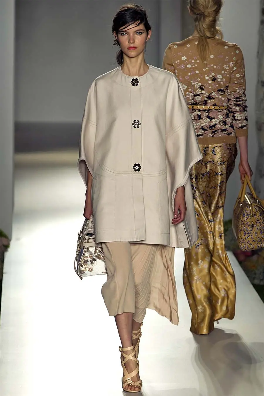 La firma británica sitúa la escena en un jardín inglés donde la primavera invadía cada rincón. Si en algunas colecciones es complicado establecer una línea que nos separe la realidad de la ficción, Mulberry la ha marcada y con creces. Un viaje al pasado con cierto aire vintage nos permite volver la vista lo justo para, de nuevo, volver a un día a día inundado de tonos pasteles con rosas, mentas, albaricoques, etc.