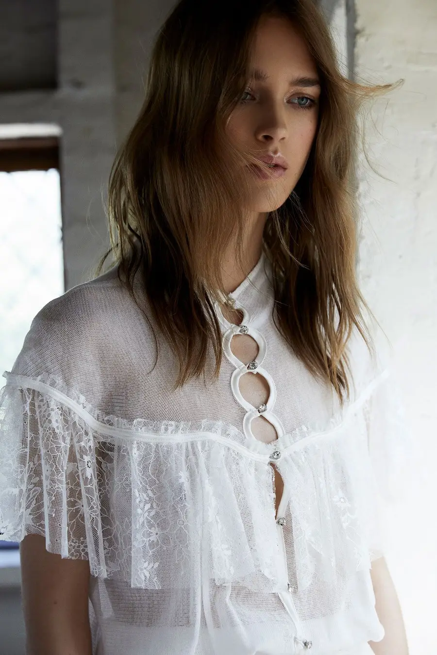 Los vestidos se crean en una paleta de color que abarca desde el radiante blanco al tono beige, pasando por los tonos arena bordados en tonos crudos. Los diseños son diversos pero todos compiten en audacia: escotados vestidos de cola, vestidos largos mostrando espaldas desnudas o vertiginosos escotes delanteros, vestidos de largo midi con lazos en tono negro y minifalderos vestidos llenos de volantes y puntillas.