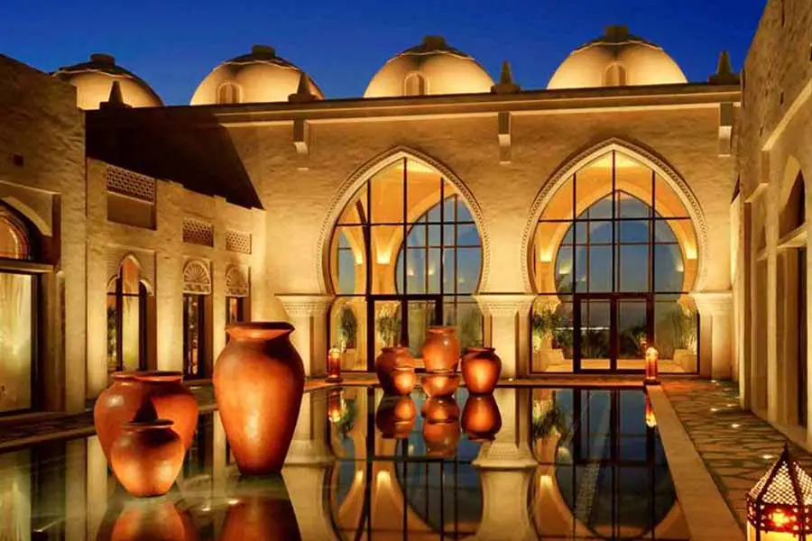 Lo consigue gracias a una decoración y una arquitectura en todo el complejo propia de los templos y palacios clásicos del mundo musulmán. Así, a diferencia de otros grandes hoteles en la ciudad, que prefieren apostar por los rascacielos más complejos y los desafíos de ingeniería más sublimes, aquí han querido apostar por un ambiente que bien podría transportar al huésped a las páginas de ‘Las mil y una noches’.