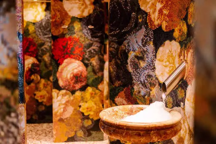 Mención especial merece el SPA del Ortea Palace Luxury Hotel porque está en Italia, tierra natal de Bisazza, concretamente en Ortygia, en Siracusa; aquí no sólo han elegido la colección Mosaic sino en particular las piezas de uno de nuestros diseñadores favoritos en esta colección, Marcel Wanders.