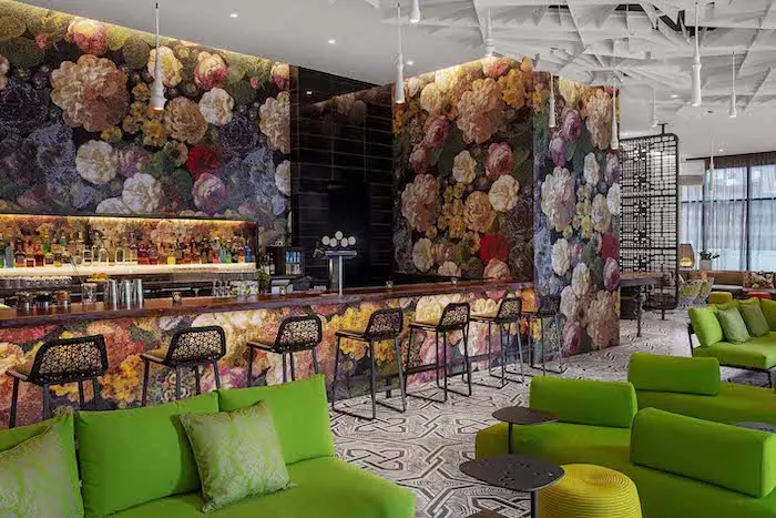 Bisazza no se queda en Europa, da el salto a Estados Unidos y complementa magníficamente el lounge bar del W Philadephia Hotel con su colección Damasco Opale.