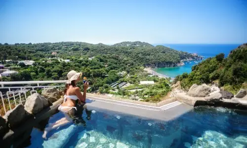 Frente a la costa amalfitana, situada en la entrada al golfo de Nápoles donde se alza majestuoso y desafiante el Vesubio y con Capri como vecina, esta “isla verde”, nombre por el que popularmente se conoce a Isquia, es un paraíso que solo los turistas más selectos eligen como destino de vacaciones. Y ya puestos a perdernos en un paraíso terrenal, pongámonos al servicio del lujo que ofrece el San Montano Resort & Spa, un hotel en lo alto de un acantilado cuyas impresionantes vistas se convierten en el reclamo de los viajeros más sibaritas.