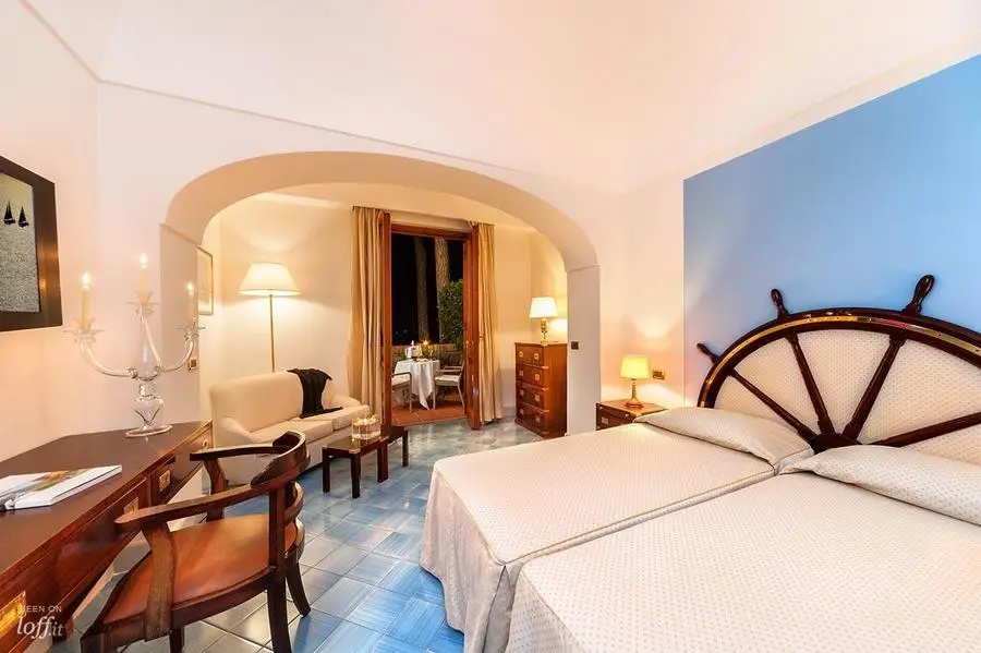 Todas las habitaciones del hotel están decoradas con un estilo clásico marinero, con un timón de madera a modo de cabecera. Algunas de ellas incluyen terrazas o balcones desde los que asomarse a contemplar el paisaje. Depende de la ubicación de la habitación, encontraremos unas vistas u otras: al este Nápoles, el Vesubio y la península de Sorrento; al sur el verde exuberante del Monte Epomeo; al oeste una colina con el azul del mar de fondo en el que sobresalen las islas Pontinas. ¿Qué tienen en común? La posibilidad de ver reflejado en el cielo la amplia gama de colores que manifiesta el sol en sus atardeceres: rojos, rosáceos, amarillos cálidos… Y, como todo en la vida, esto también tiene un precio y el mínimo en temporada alta son 170€ por la habitación estándar que llega hasta los 550€ en el caso de la suite.