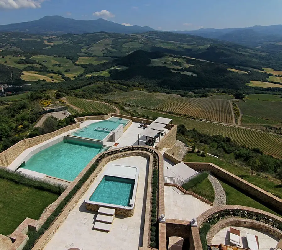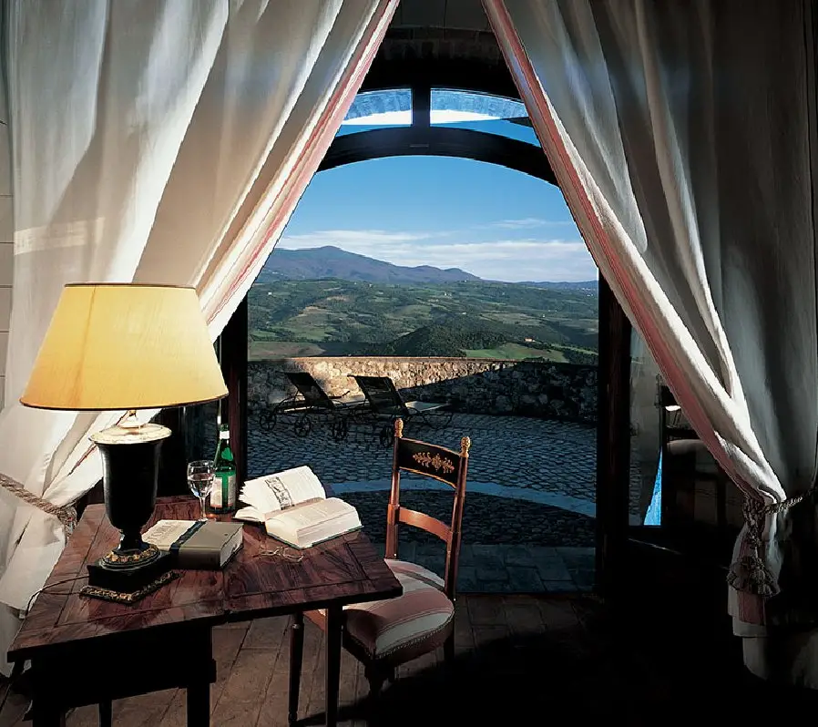 Uno de estos lugares de absoluto regalo para el cuerpo y el alma es el Castello de Velona, en el corazón de La Toscana. Se trata de un castillo que fue fortaleza medieval en el siglo XI y testigo del trasiego en los caminos que llevaban a Roma además de estar rodeado por el parque natural de Val d’ Orcia.
