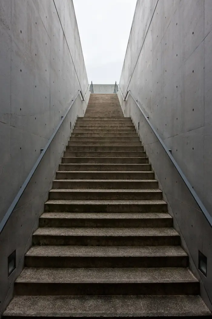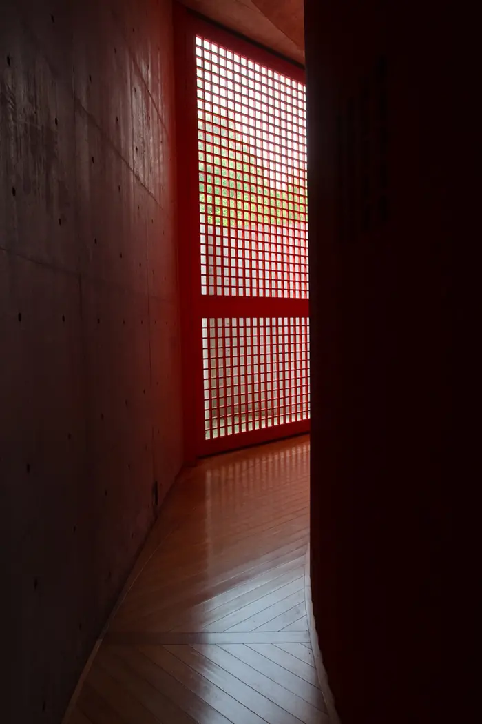 Todas las formas que definen el espacio se construyen en un hormigón visto perfectamente trabajado y moldeado, cuya austeridad formal se ve compensada con el tratamiento de la luz y el juego de perspectivas parciales que van anunciando el recorrido sin mostrarlo abiertamente, un camino que insinúa más que muestra.