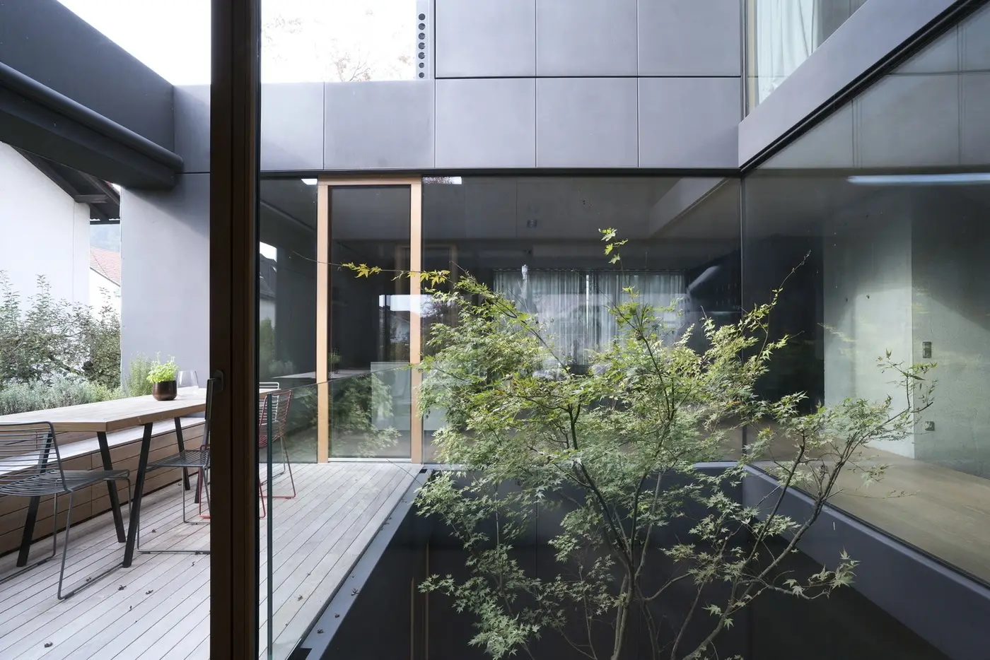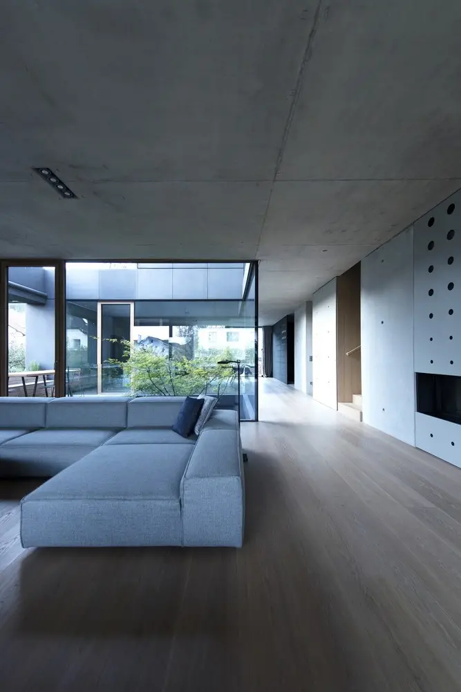 House Portico está ubicada en el corazón de la ciudad, en lo que llaman el Beverly Hills de Ljubljana y, desde luego, por su diseño no desentonaría en absoluto en el de Los Ángeles, es más, probablemente desentone más entre las viviendas que la rodean en este bario d Ljubljana; conceptualmente, la casa responde a los diseños habituales en esta zona, plantas bajas elevadas y pórticos a la entrada pero ahí termina el respeto a la tradición, el equipo de FFI Arhitecti toma esas ideas y las reinventa: no sólo utiliza el pórtico y las escaleras cubiertas sino que crea jardines en el escalera en el tejado y con orientación sur de modo que todas las habitaciones cuentan con su propio jardín, además crea también un atrio con un jardín interior que llena la casa de luz y facilita su ventilación.