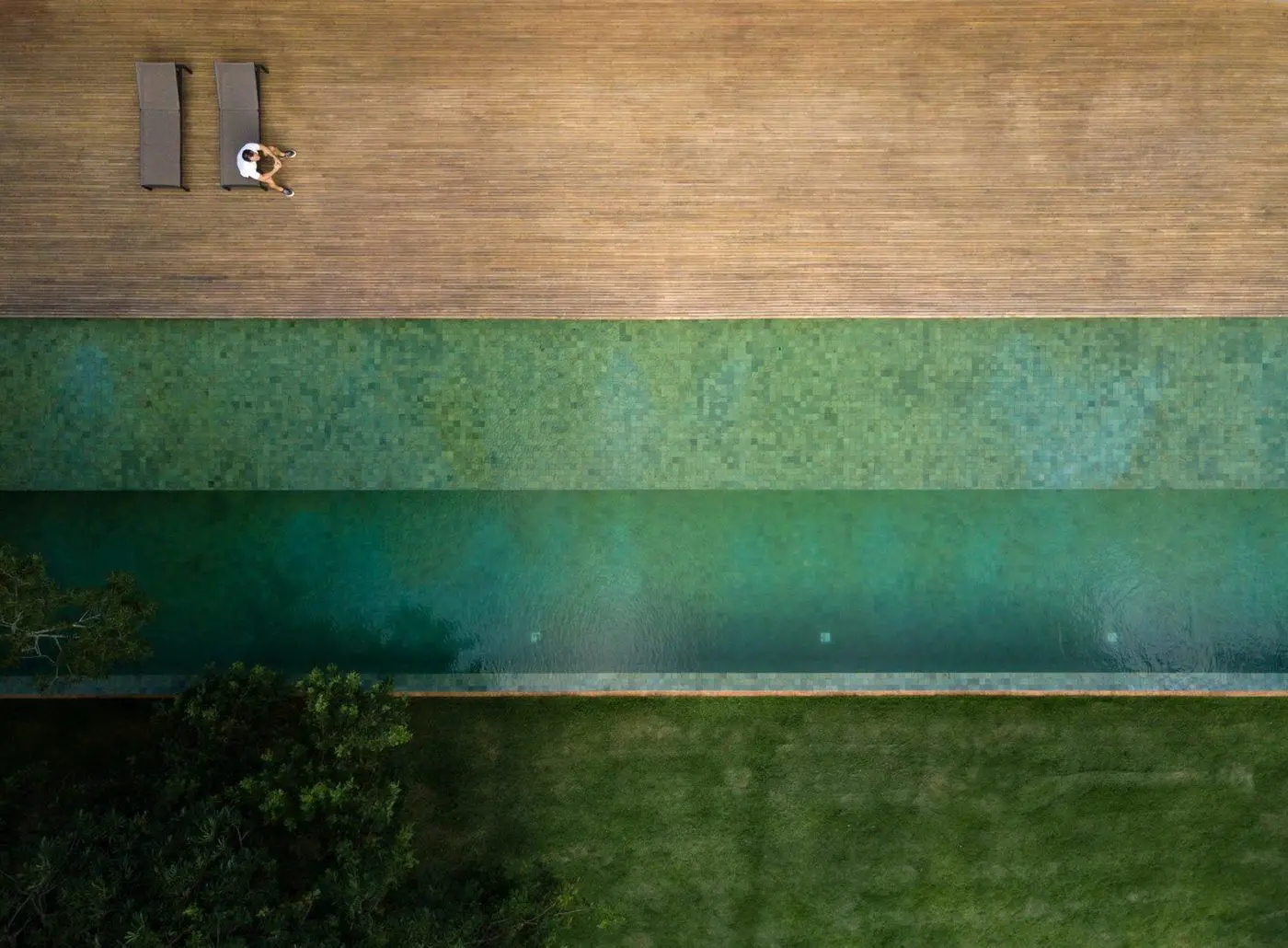 En un paraíso verde y natural esta casa se convierte a la vez en la más moderna y de diseño más vanguardista y ecológico y en la más discreta porque pasa casi desapercibida a la vista; su interiorismo es también discreto y muy elegante, está protagonizado por materiales nobles como la madera y se decora con piezas de diseñadores de primer orden como Patricia Urquiola o firmas como Kettal. El último detalle de lujo y placer, el que disfrutarás en un rincón del mundo de clima tropical como éste, es la piscina que se situa frente a la casa y se oculta parcialmente entre los árboles.