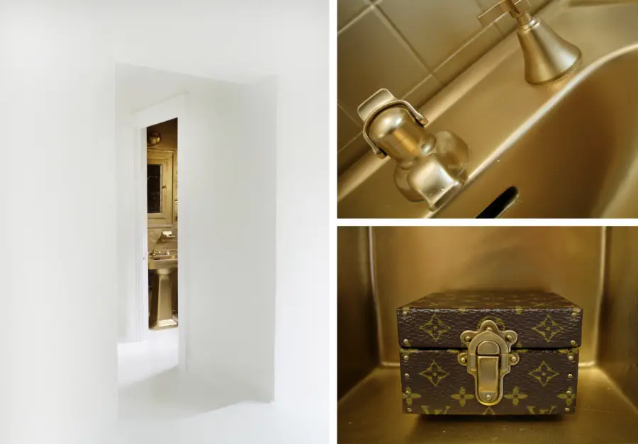Además de estos detalles que coquetean con el minimalismo, encontramos otros de estilos bien distintos, en algún caso más cálido como el sofá de madera oscura y tapizado verde de la biblioteca o la cómoda bajo el ventanal, un mueble vintage; clásicas lámparas de pantalla y modernas de pie y en arco; sillas funcionales, y blancas, que evocan a las de oficina en un espacio de comedor de uso diario y, en contraste con ellas, otras negras, elevadas y entretejidas en el comedor de las cenas con invitados. Los baños se unen a este uso del contraste, uno en blanco y madera, el otro en oro.