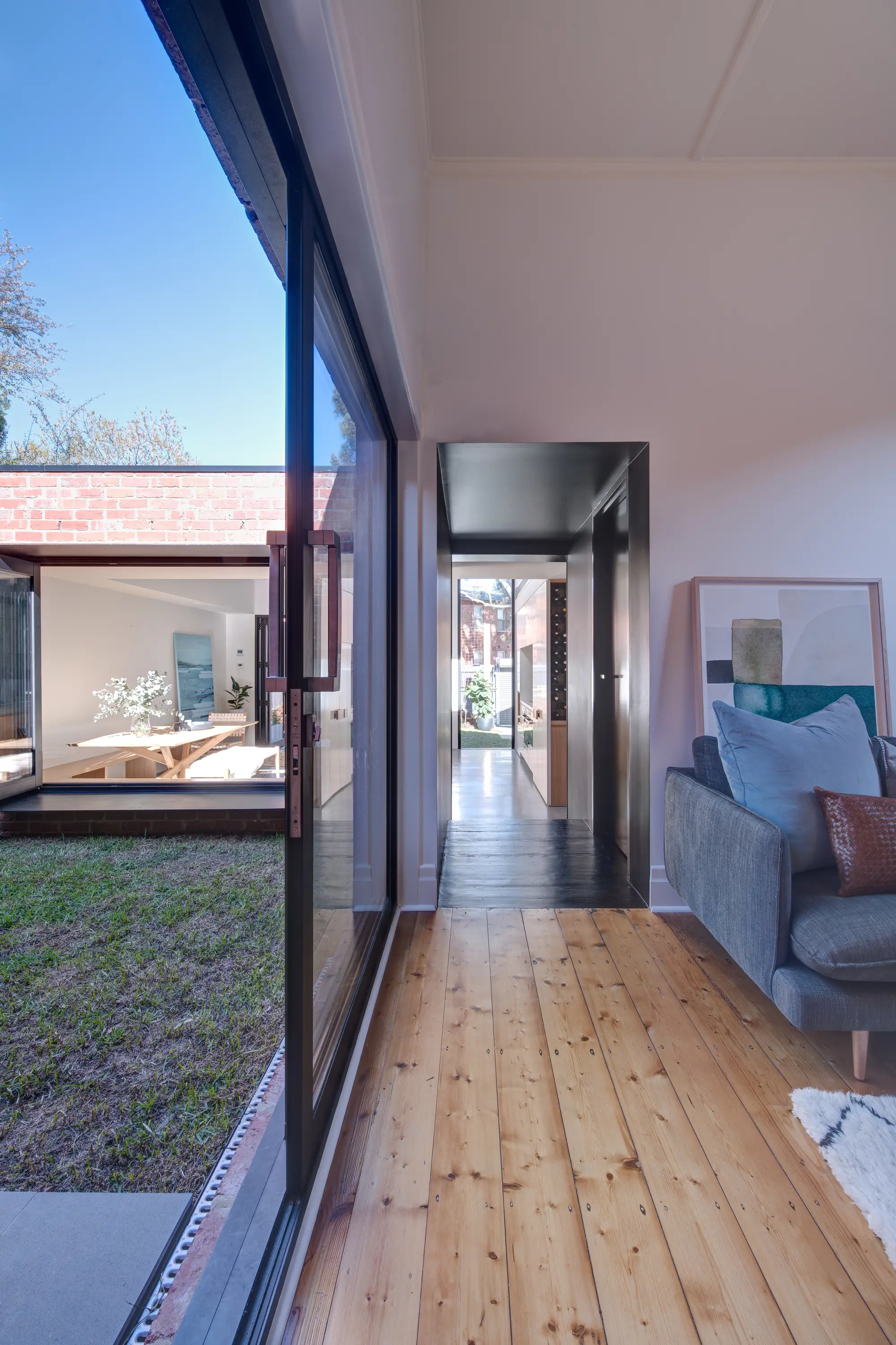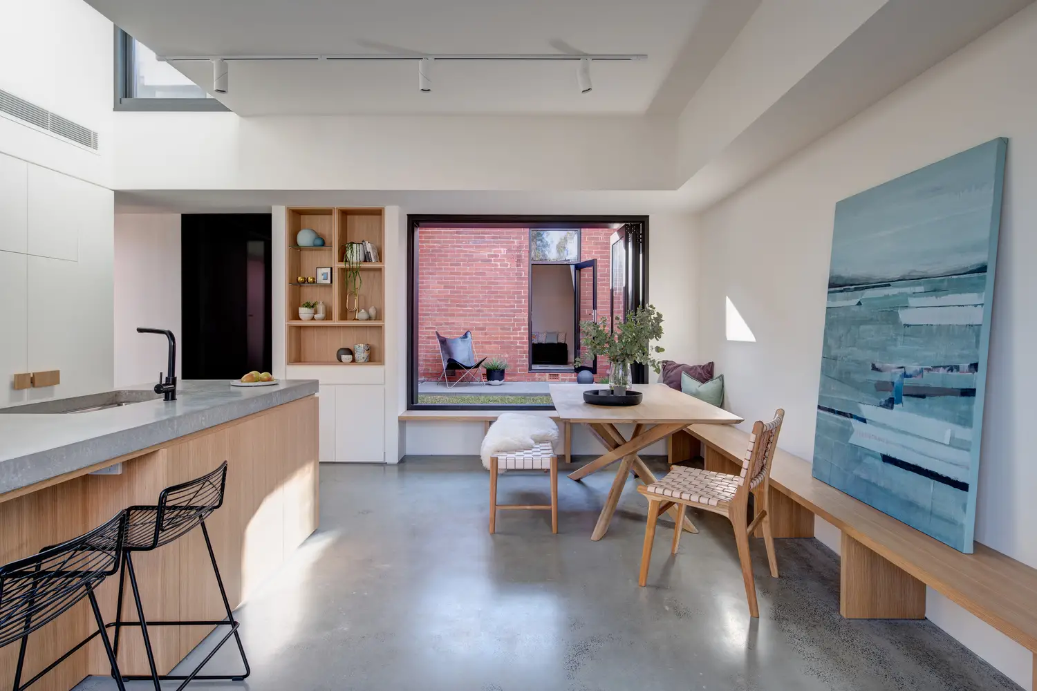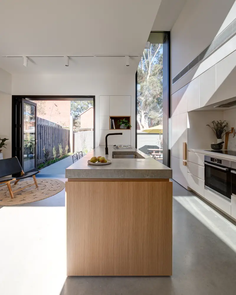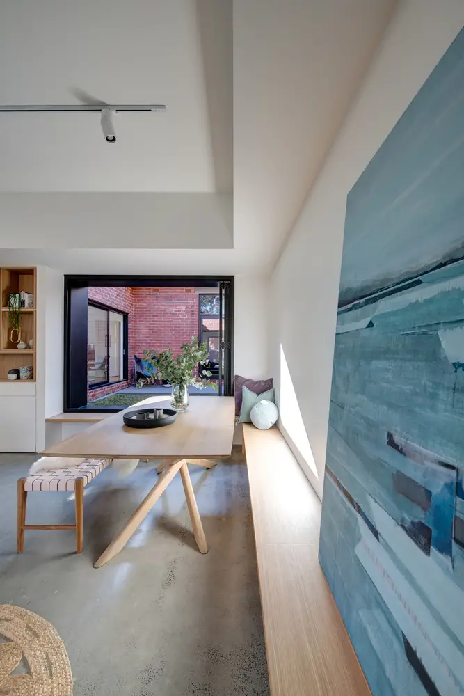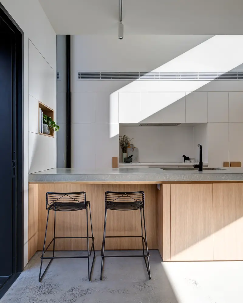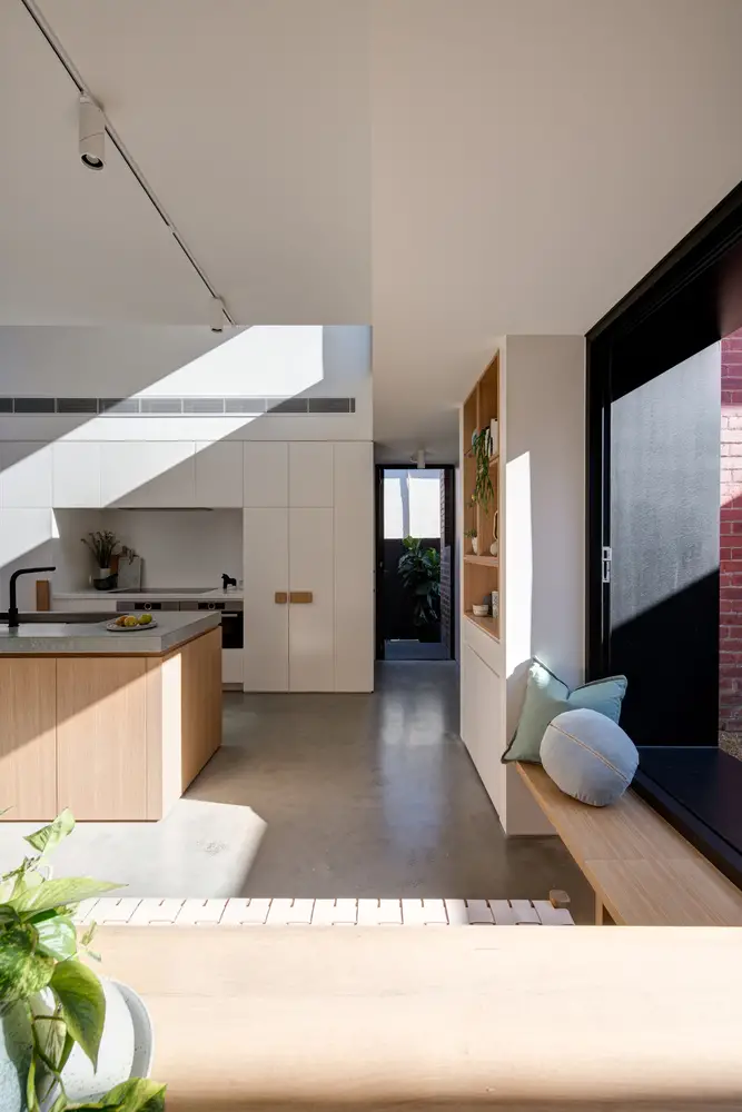 Es ahí donde entra el estudio de arquitectura Crosshatch, su inspiración en el tetris y su magnífico trabajo en el uso de los espacios y las ventanas para dar a la casa más metros y también más amplitud de la que daban esos metros de más (que eran sólo 45).