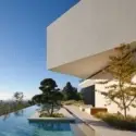 Estamos ante una mansión de vanguardia construida a tres alturas que parecen colocadas al azar o de cualquier modo, como si alguien hubiese tirado las plantas al aire y las hubiera dejado tal cual la casualidad las colocó sobre la tierra. Claro que ésto es sólo una sensación a primera vista, nada en esta villa es casual, la ubicación de los dormitorios principales en la parte alta de la casa, tampoco. La piscina, a la se accede por unas bellas escaleras, mira a la ciudad desde el remanso de paz que supone esta vivienda.