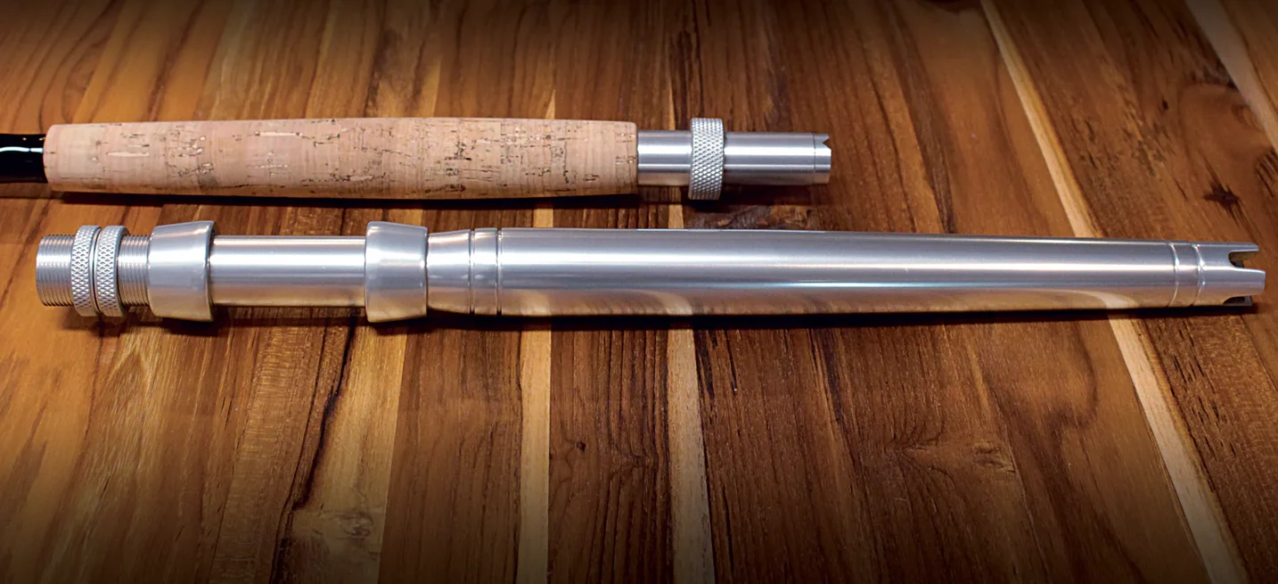 Este nuevo combo incluye una caña de pescar de fibra de vidrio y grafito con acabado aplicado a mano y guías de marco de titanio, carrete de aluminio y acero inoxidable, rodamientos de bolas de acero inoxidable de doble escudo y un carbono multidisco de fibra de carbono.