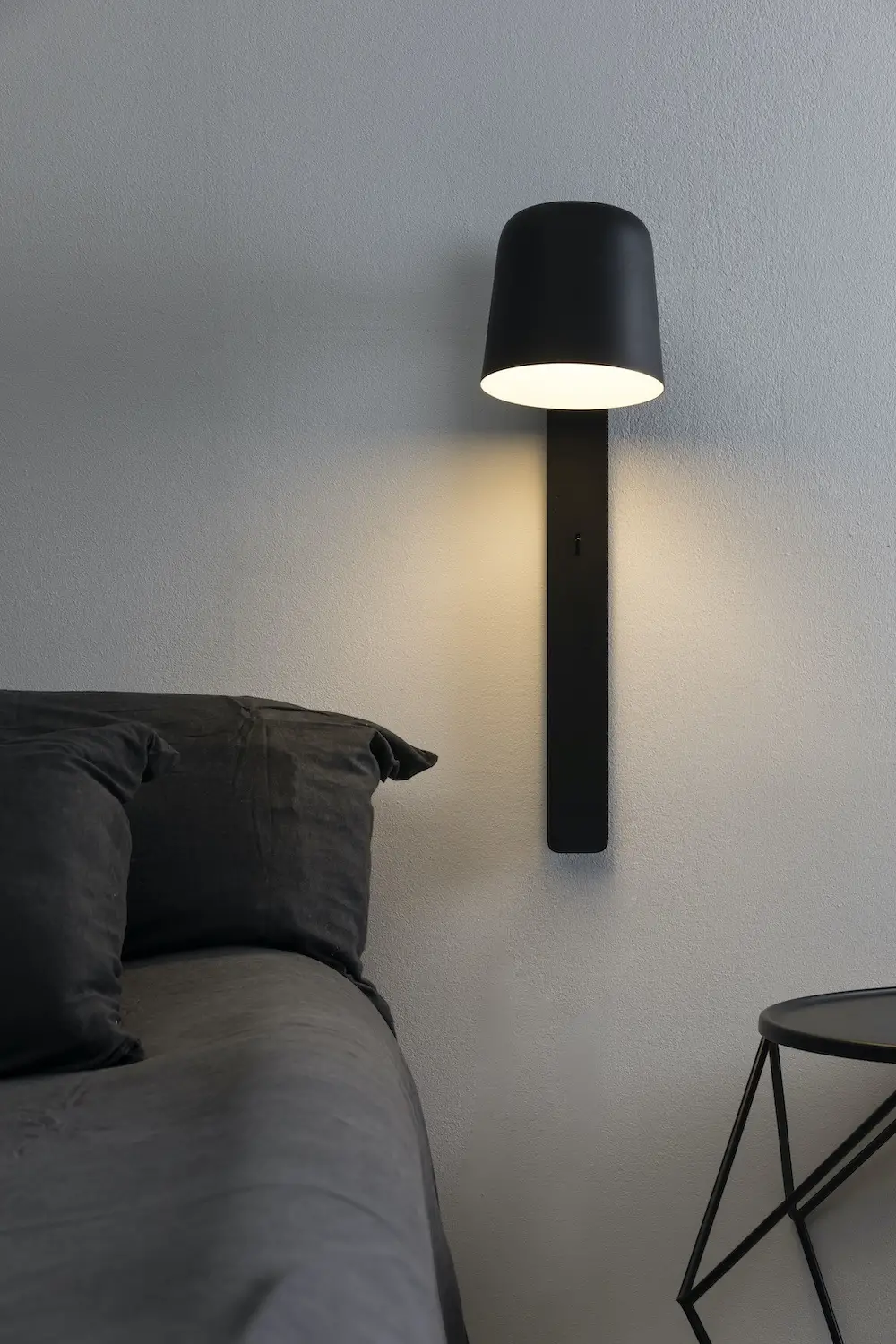 Tila es un punto de luz, un aplique elegante y funcional que se puede instalar tanto en horizontal haciendo que la base sirva de soporte para algún cuadro o fotografía, como en vertical de modo que ese mismo soporte sirva para ocultar el cable; se trata de una lámpara auxiliar de acero que se presenta acabada en dos colores, en blanco o en negro.