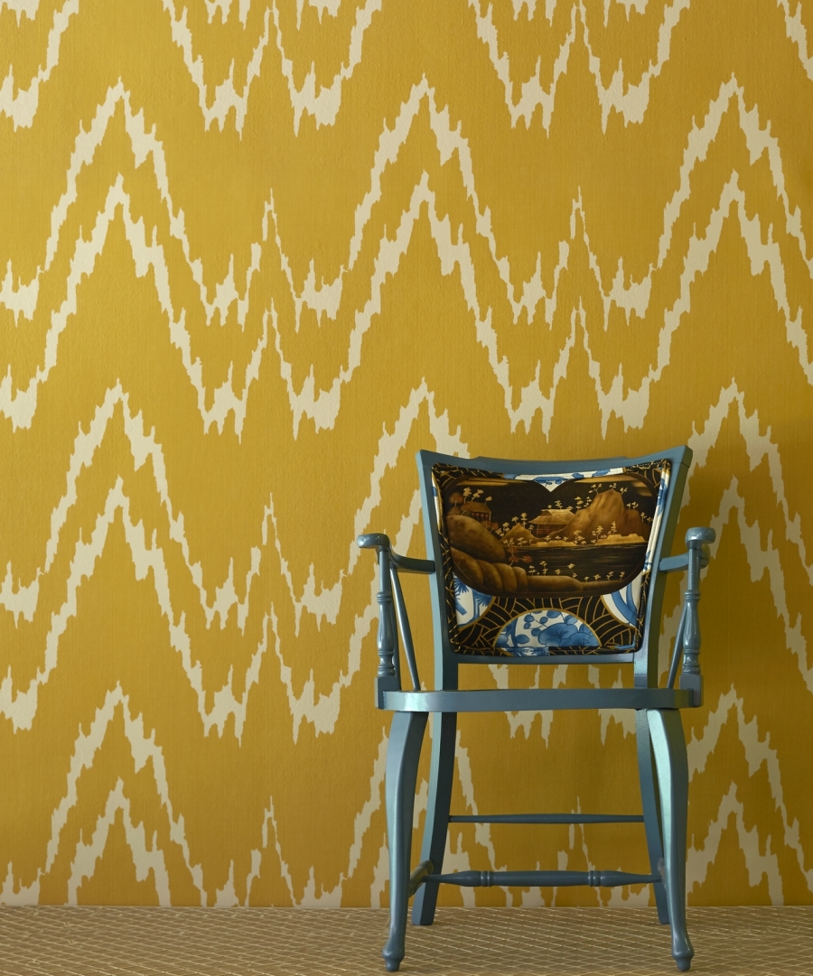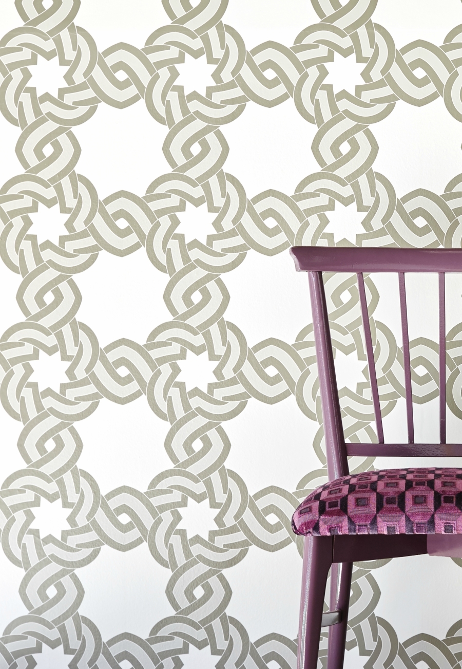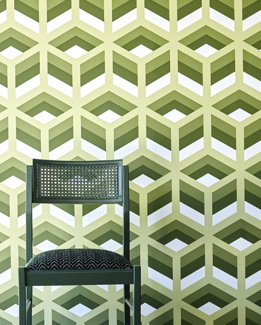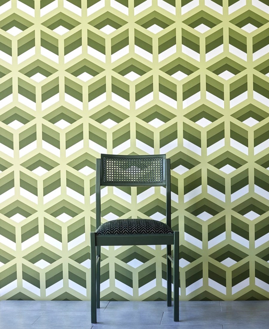 Y si la estrella de la colección textil de Lorenzo se llama Janano, no podía faltar su versión en papel pintado: Jano. Un estampado clásico muy del XVII, cuya geometría abstracta y juegos cromáticos arriesgados lo convierten en uno de los diseños más vanguardistas de la serie.