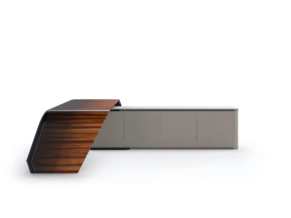 Por lo que respecta al escritorio Styal se presenta como una obra maestra de Bentley Home, una pieza además importante porque con el auge del teletrabajo cada vez son más quienes necesitan montar un pequeño despacho en casa o incluso un escritorio en un rincón de la sala de estar; este escritorio es de diseño curvo y luce un marco de madera de 3 metros cubierto de cuero o chapado; tanto la estructura como la tapa se pueden personalizar porque se presentan en diversos acabados (sicomoro Fiddleback gris cálido, Liquidambar ahumado o raíz de nogal Burr, con un acabado brillante y cepillado).