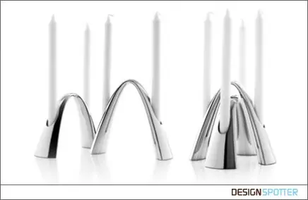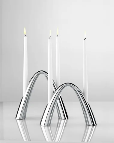 Con el sugerente nombre de Twilight (Crepúsculo) que remite a la luz que nos pueden proporcionar su luz, el sujetavelas está realizado en acero inoxidable pulido y se presenta en dos modelos, grande y pequeño, que si se cruzan pueden construir un equilibrado centro de mesa con cuatro puntos de luz.